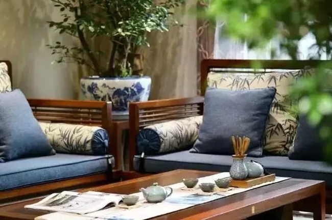 深色系的主體色 新中式風格講究空間視野的深淺有序,背景基調(diào)為淺色系,那么主體顏色多搭配顏色較深的紅木家具。