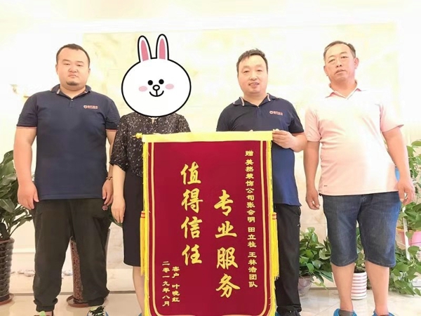 8月11日,金地小區葉女士為美然裝飾送來錦旗,對工程主管張會明及設計師王林浩給予肯定。