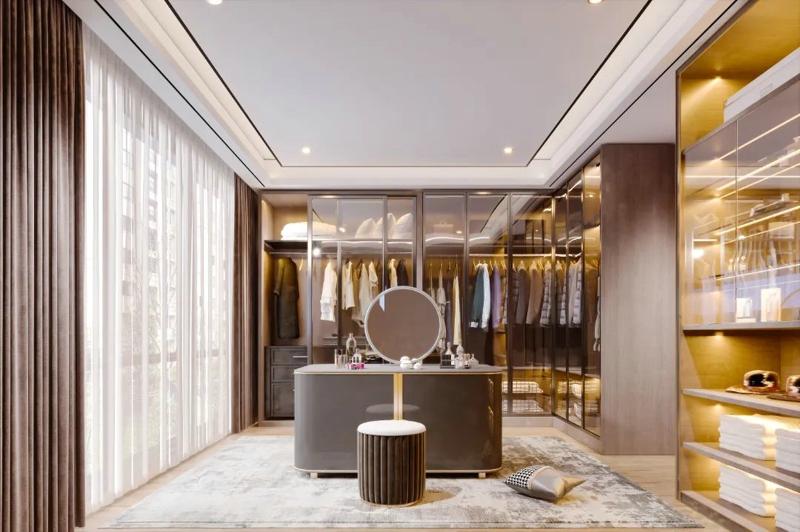 設計師注重開發實用的功能性,步入式衣帽間憑借優質的炫彩和貼心的功能設計,將各類服飾收納其中,帶來極佳的視覺效果,打造精致又有序的儲物空間。