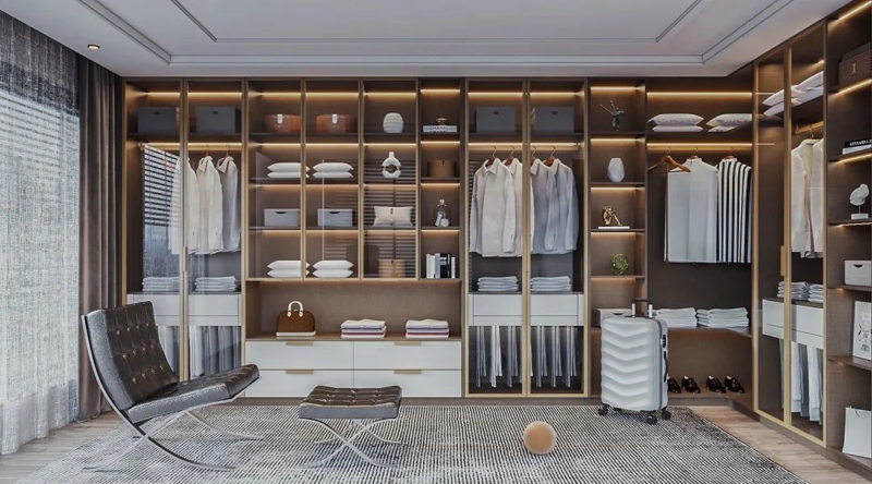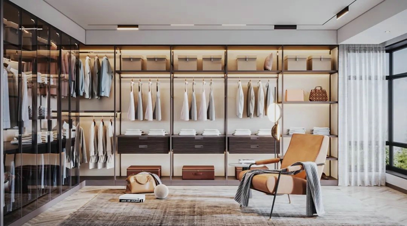 隨著人們生活質量不斷提高,幾乎每個人都擁有幾十件甚至更多的衣服,這些款式、質地不同的服裝的累積,人們開始對其進行分類收納,因此衣帽間正逐步成為每個家庭空間中不可或缺的一部分。