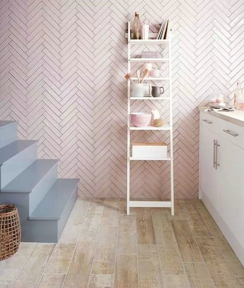 步步高鋪貼法,也稱階梯鋪貼法。它有點類似于工字型,但不光講究排與排之間錯位鋪貼,還營造出一種像樓梯一樣拾級而上的感覺,這種鋪法在生活中也很常見。它與工字鋪最大的區(qū)別就在于,工字型的對稱更為嚴(yán)謹(jǐn),而步步高的起點則比較隨意。