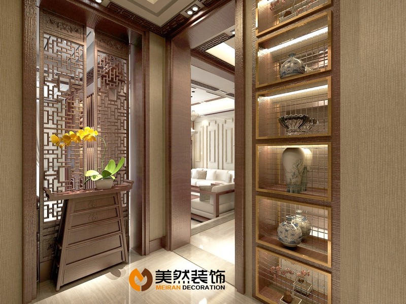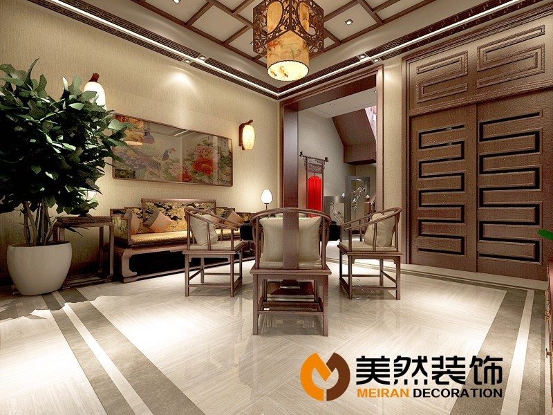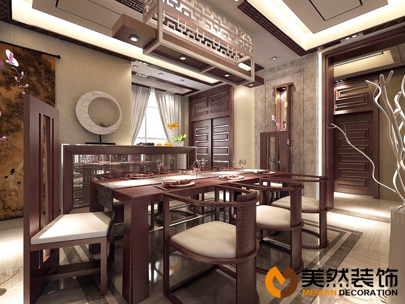 本案追求高雅簡潔卻又低調的淡雅氣質。這是一個三層的別墅,一層是起居室和餐廳,二層則是設計作為十分私密的私人空間,是主人家的臥室和主要活動空間,生活得精致通常是以舒適作為基本,然后是周到。地下一層是娛樂空間。運用現代東方主義設計,以耐人尋味的紅胡桃色作為主背景,一改往日繁瑣冗雜的修飾手法,用沉穩的筆觸勾勒出溫婉典雅氣質,糅合空間的色調,一切仿佛渾然天成。相近色系完美的跳躍搭配使得空間有著優雅的變化,隨處都展示著主人超脫的審美觀和悠閑淡然的氣質
